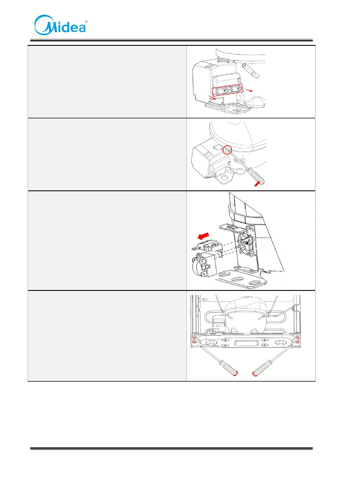 8Loosen the screw of the compressor bottom plate,