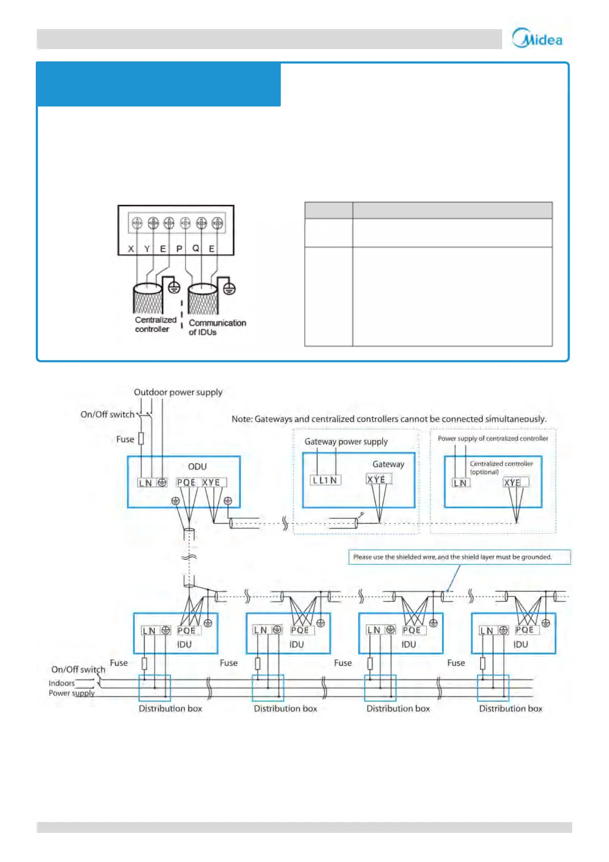 P Q E Connect between indoor units and outdoor unit