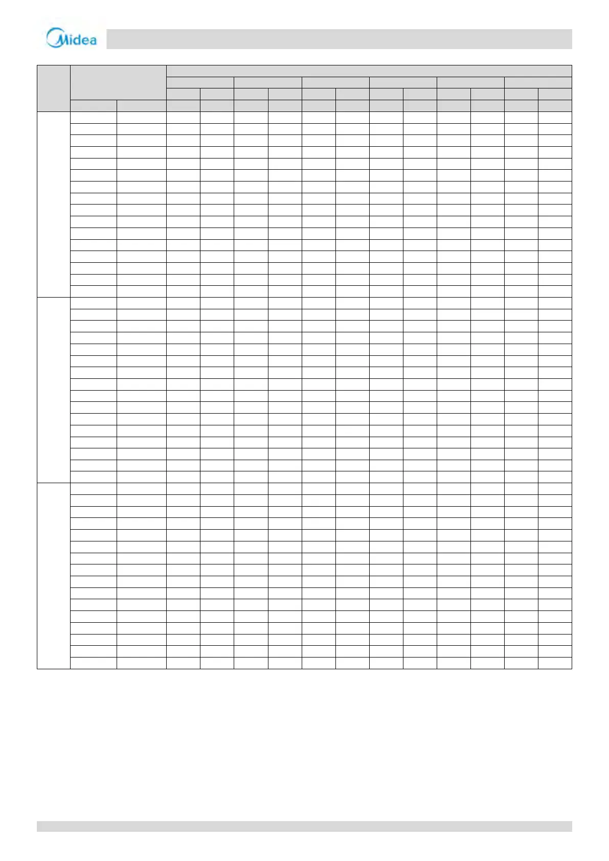 Table 2-7.7: MDV-V36WDHN1(AtB) heating capacity (continued)