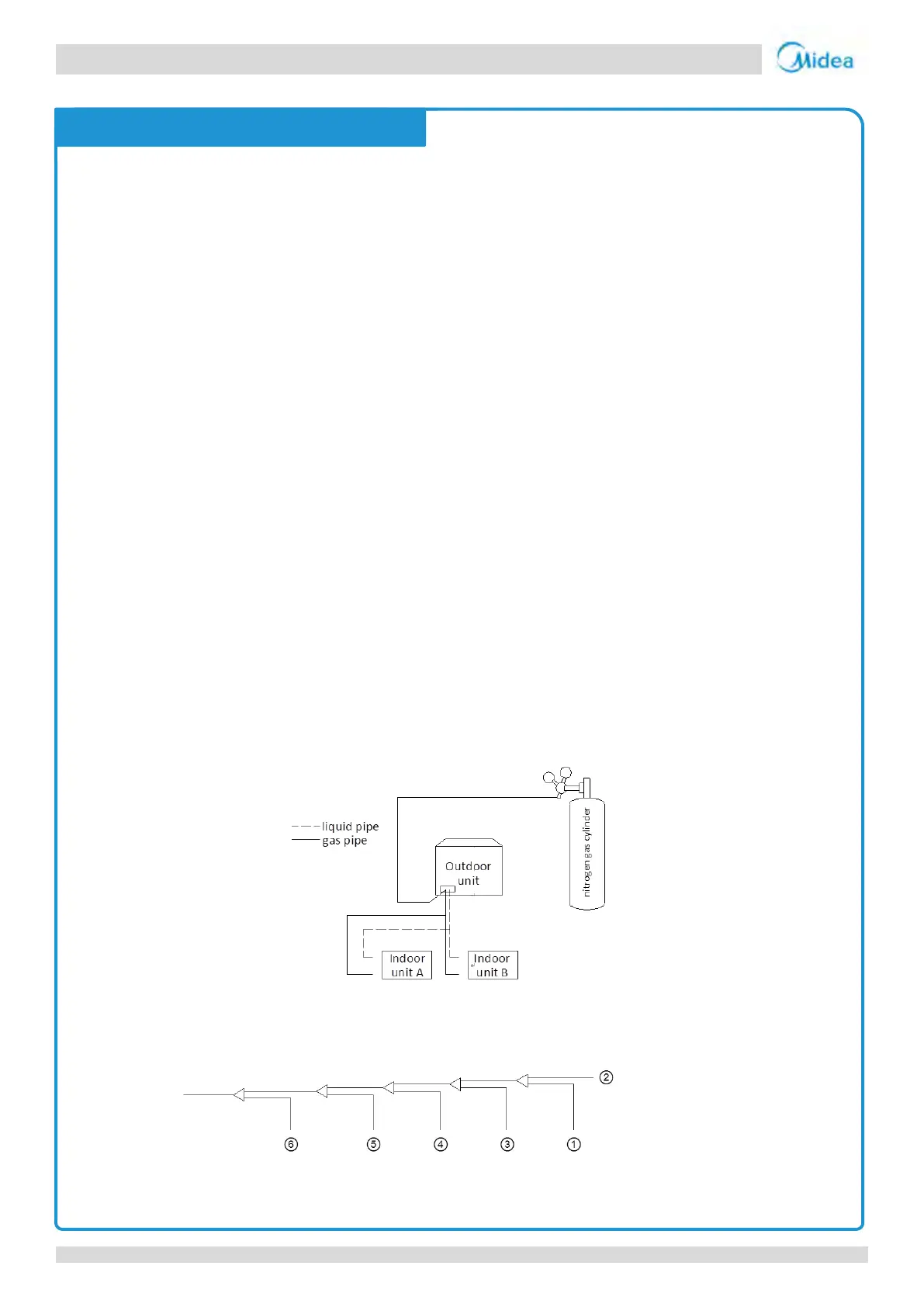6. Allow time for nitrogen to flow as far as the opening at indoor unit A.