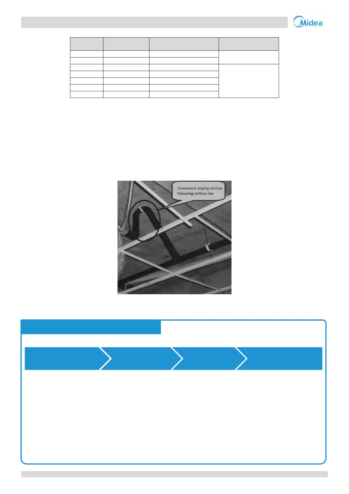 A downward sloping section should immediately follow the vertically rising section adjacent to the unit, otherwise a