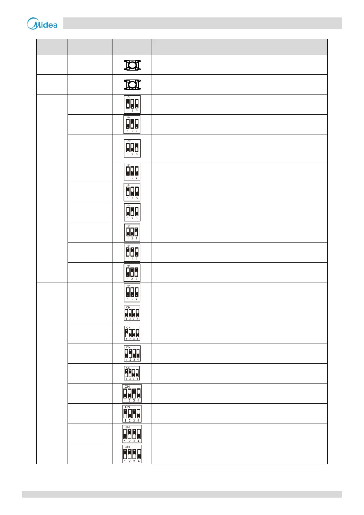 Table 4-1.1: 28 model outdoor unit main PCB switch settings