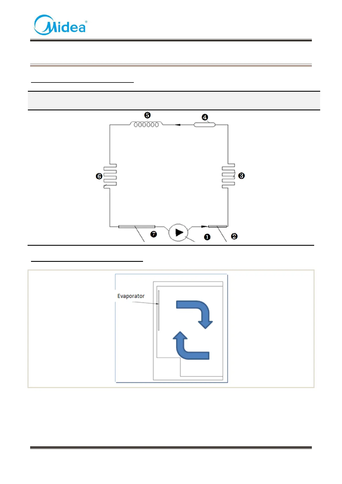 CompressorExhaust transition pipe→condenserDry filterCapillary