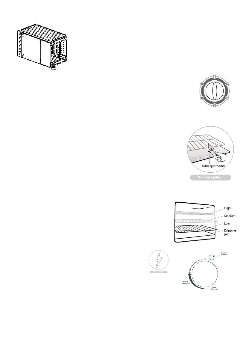 Manual ignition:Turn the knob to the maximum position, then at the same time keep a match