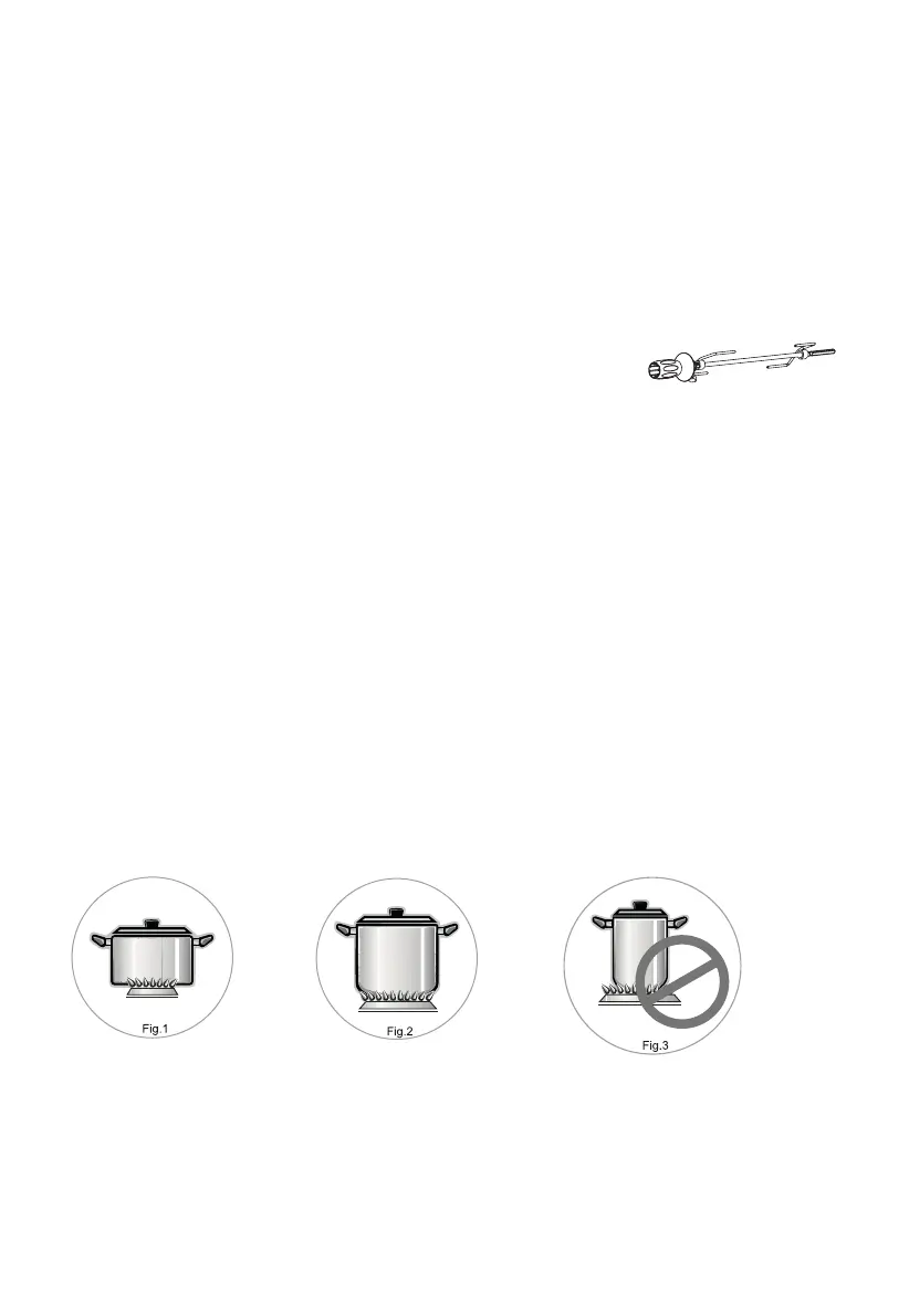 size(fig.1and 2), preventing the flame to burn in the open(fig.3).It is advisable to reduce the flame as soon as the liquid