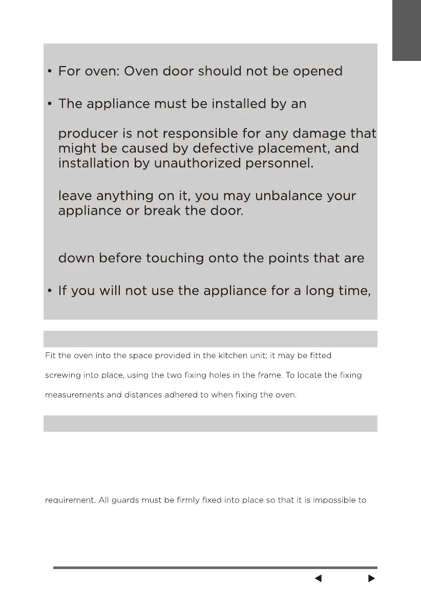 underneath a work top or into an upright cupboard. Fix the oven in position by