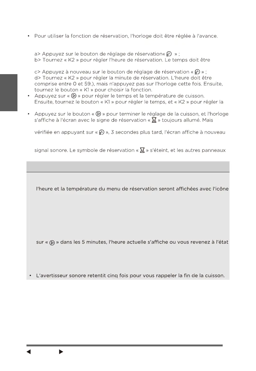 • Au moment de la réservation, la cuisson démarre automatiquement après un