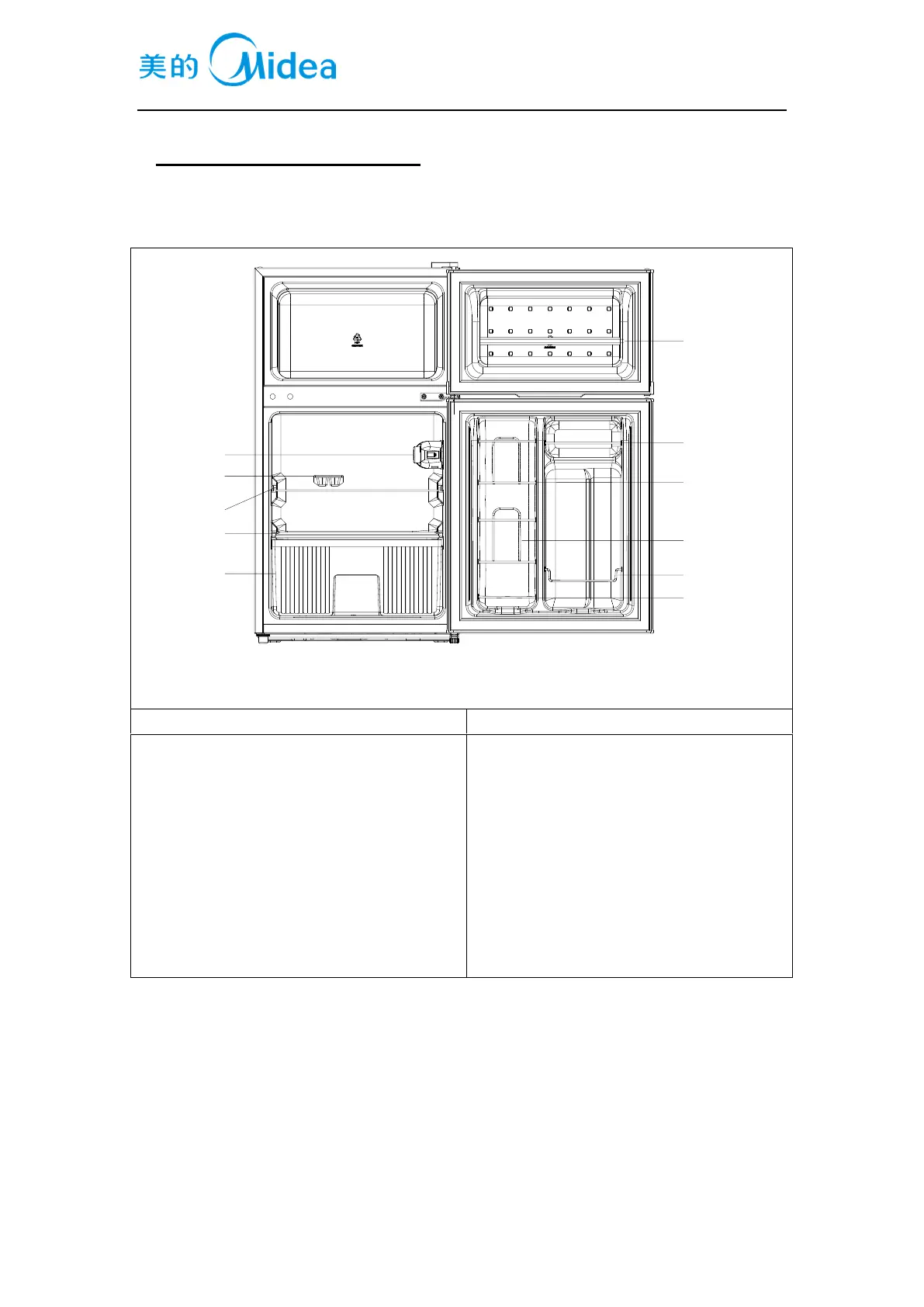 Midea CE-BCD87CM-SQ - 6 Internal View and Dimension; Main Parts and Their Names