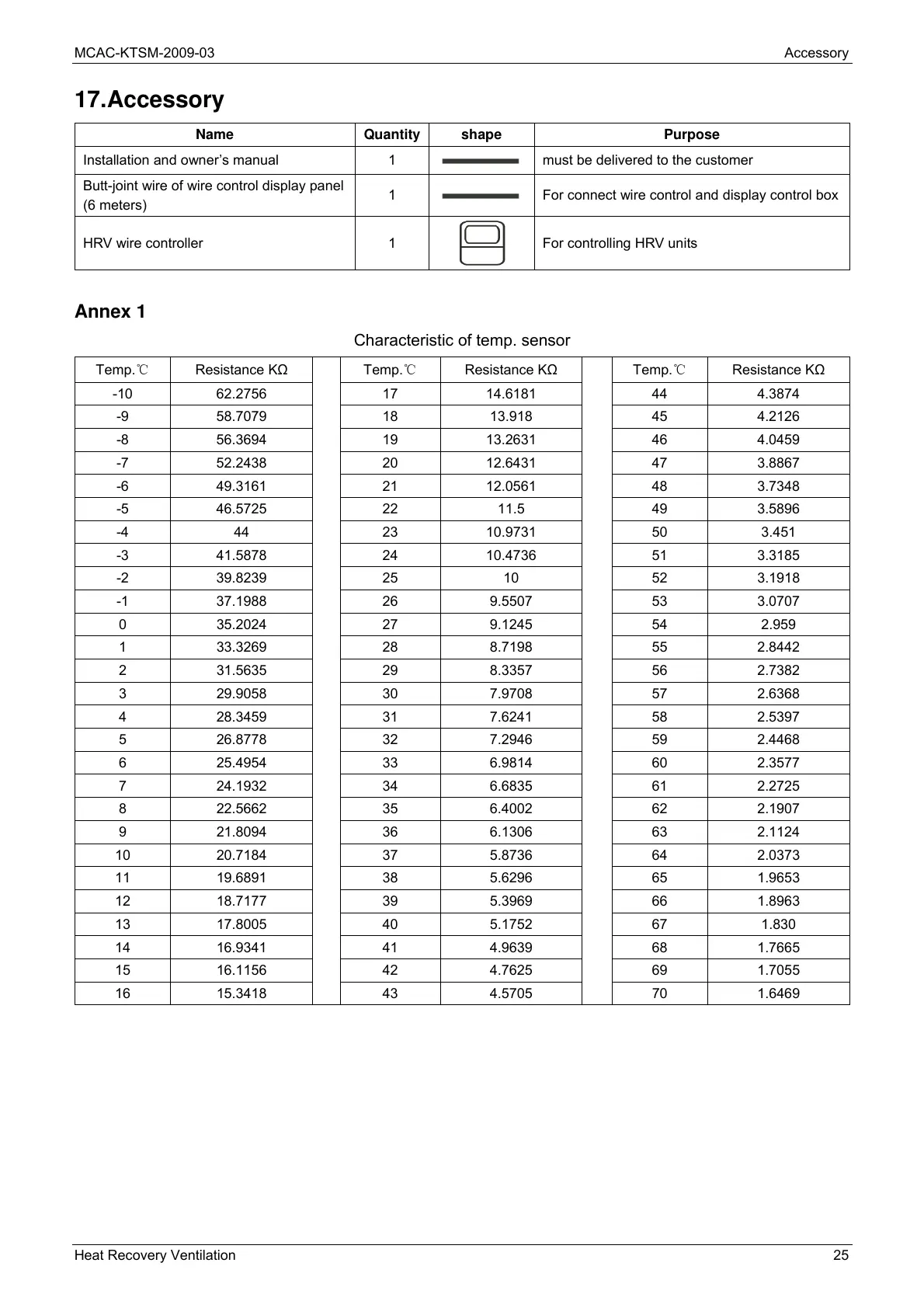 Temp.℃ Resistance KΩ Temp.℃ Resistance KΩ Temp.℃ Resistance KΩ