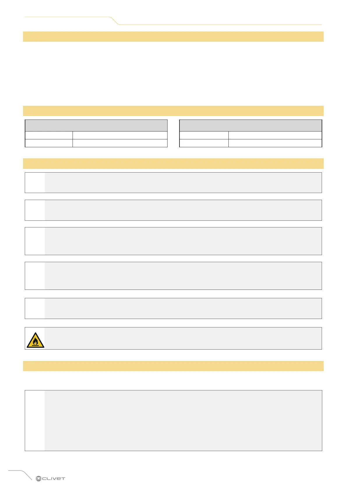 The product CLIVET is covered by a conventional warranty, valid from the date of purchase of the appliance,
