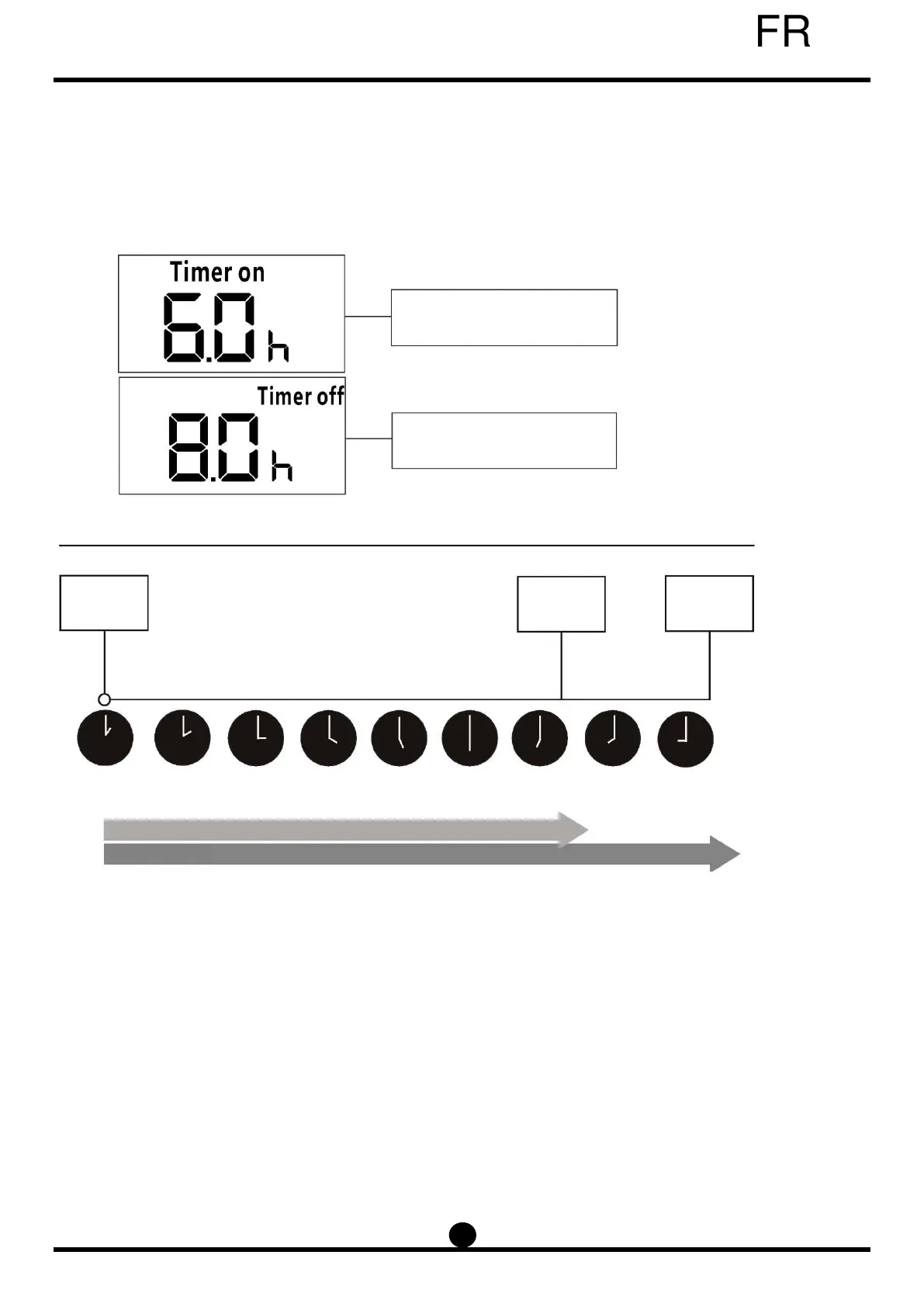 Exemple : Régler que l’appareil se met en marche au bout de 6 heures, fonctionne pendant 2 heures et s’arrête