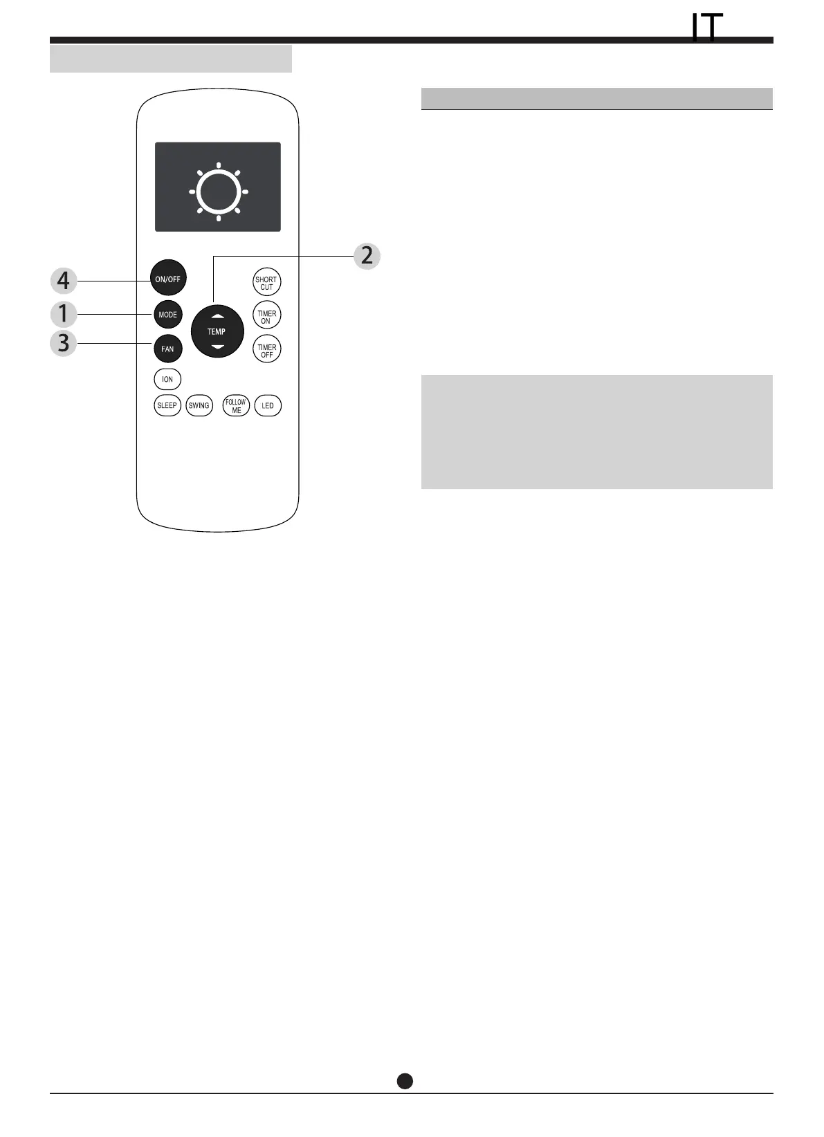 3. Premi il tasto FAN/VENTOLA per selezionare la