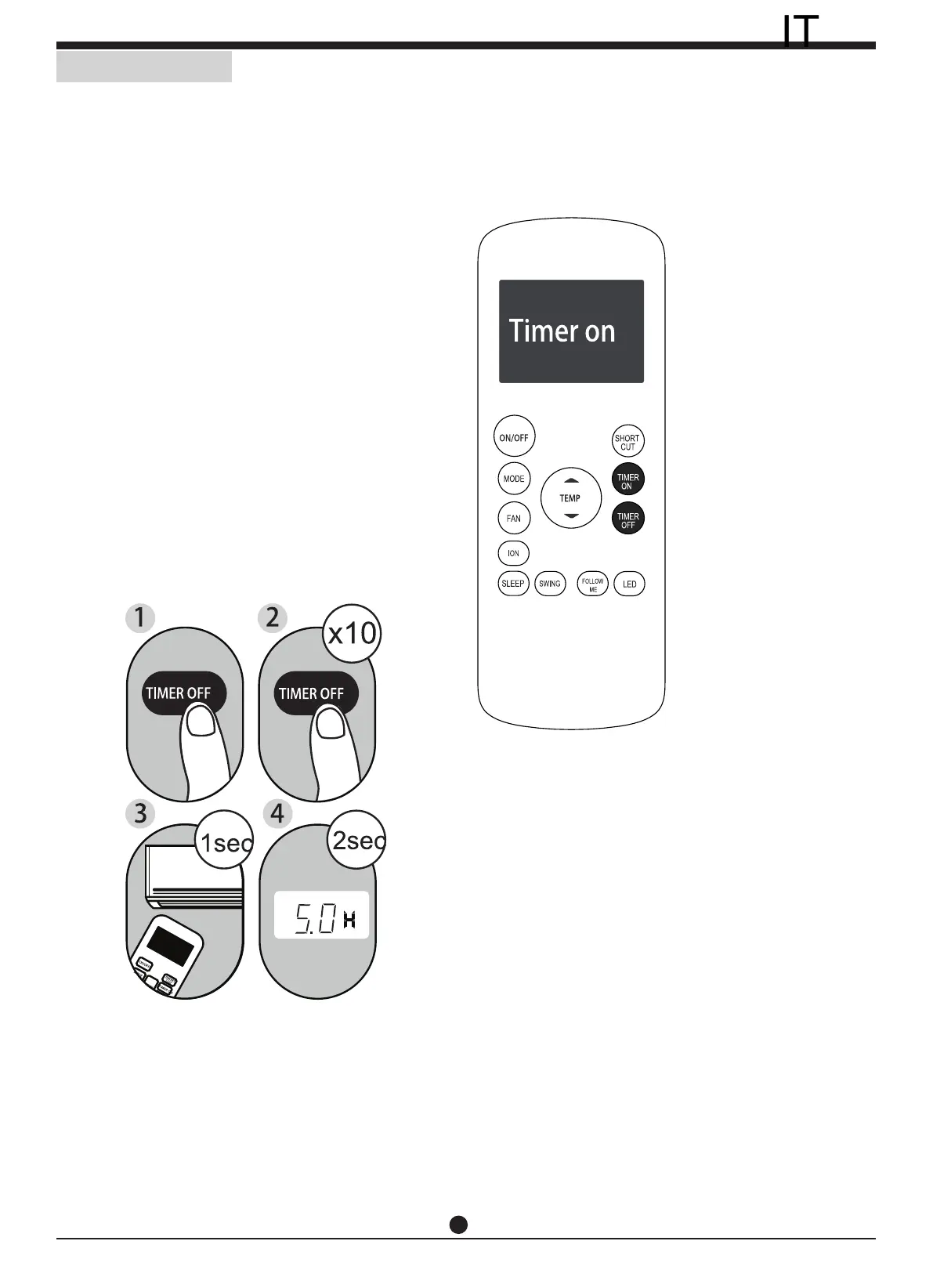 TIMER OFF, fino a 10 ore, il tempo incrementa di 30 minuti