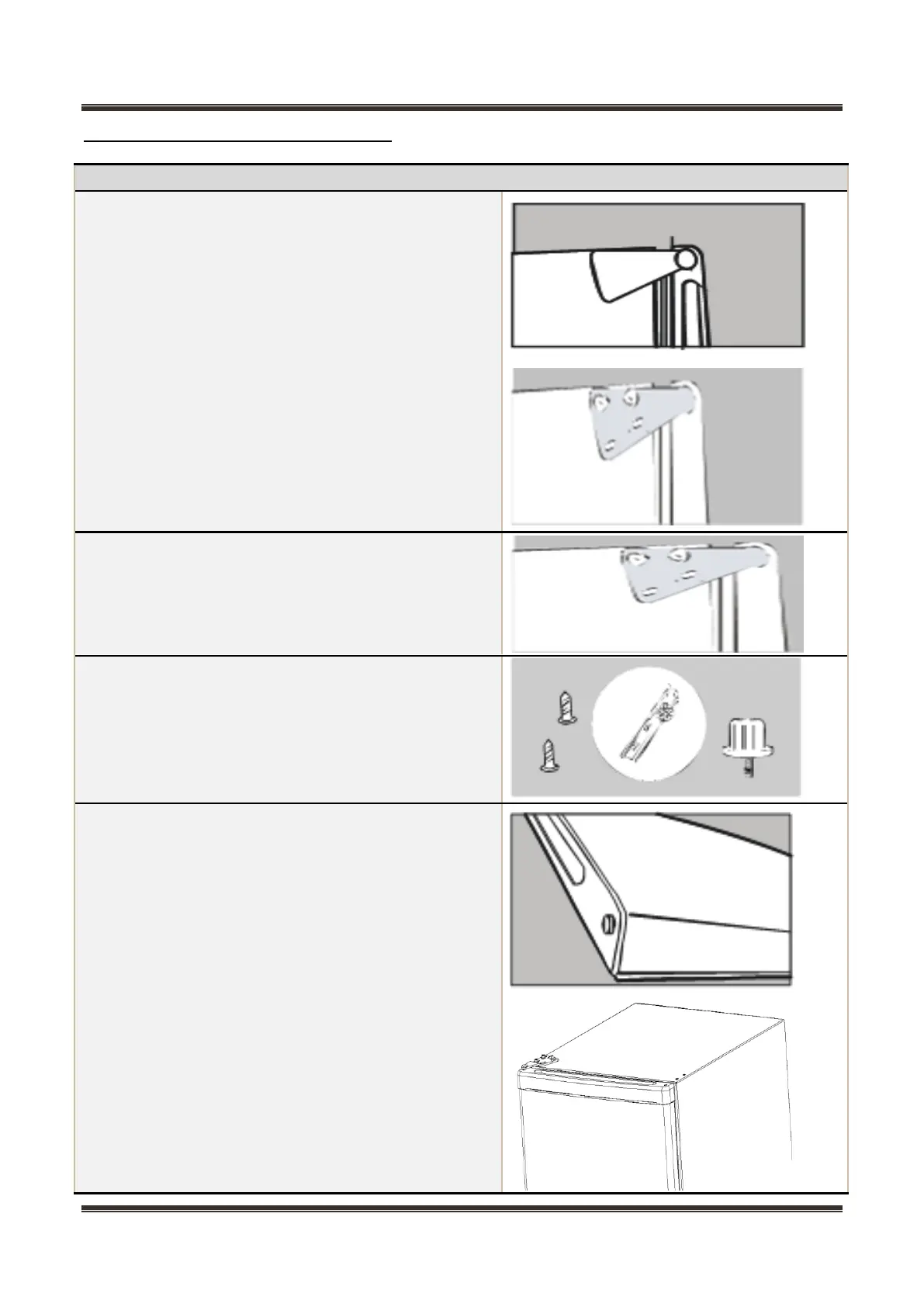 1) Fix the levelling feet, lower hinge adjust feet