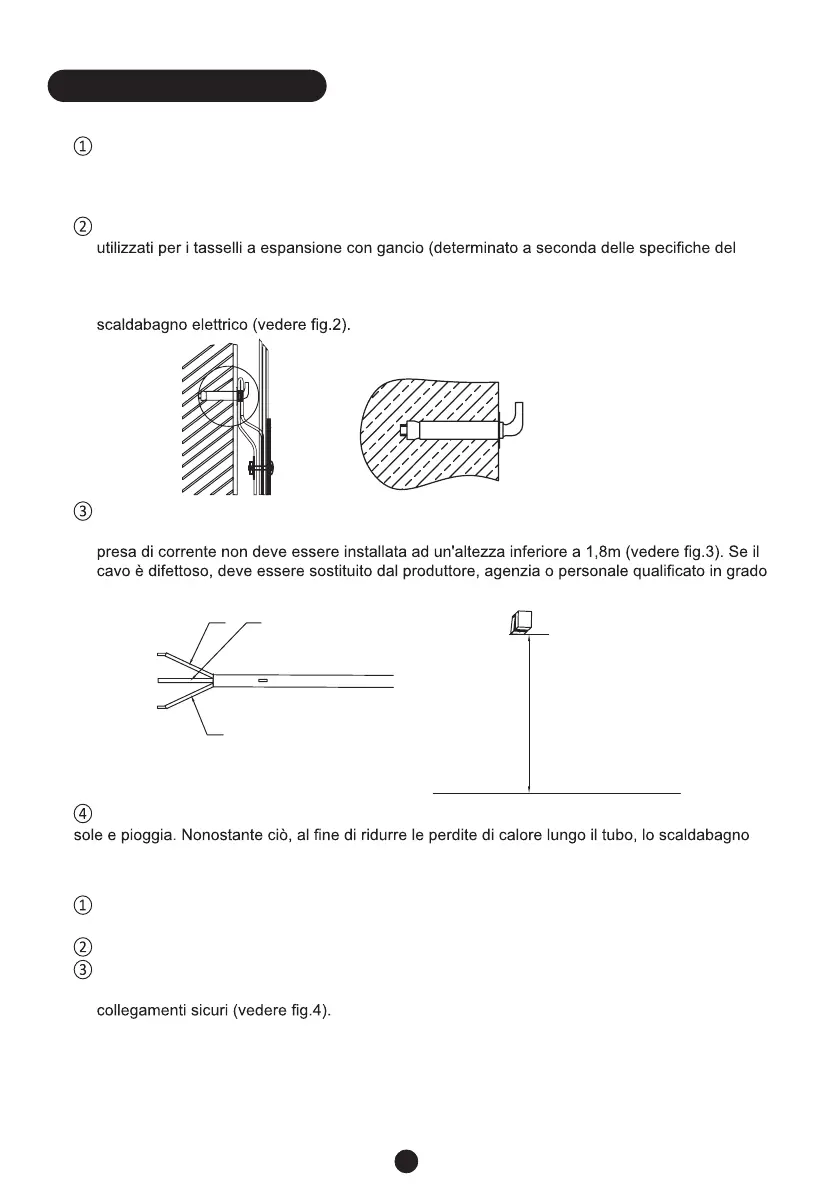 Questo scaldabagno deve essere installato su una parete solida. Se la parete non è in grado