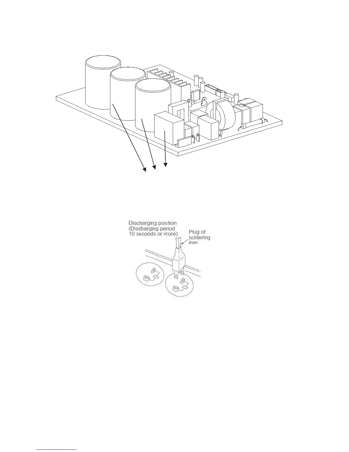 Ω 40W) or a soldering iron (plug) between the +, − terminals of the