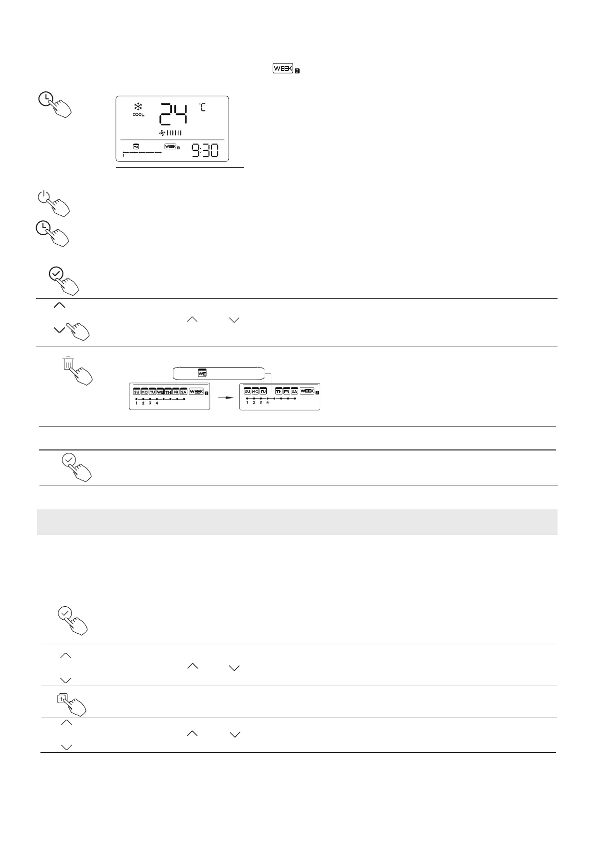 Press “ ” or “ ” to select the day of the week.