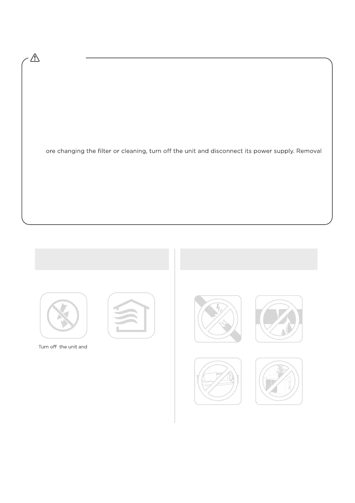 • Always TURN OFF your AC system and disconnect its power supply before cleaning or