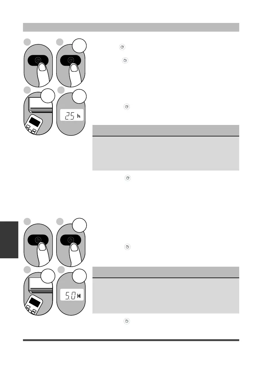 For example, if you set TIMER ON for 2 hours, “2.0h“