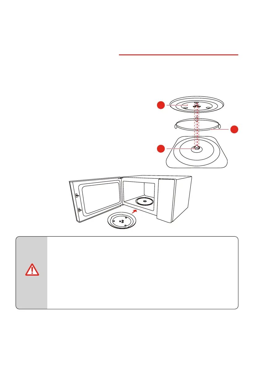 • Never use the appliance without the turntable. Make sure that it is properly