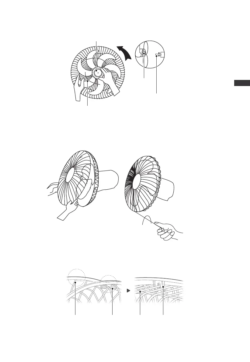 Fix the front guard and the rear guard with circlip and then tighten the fan guard