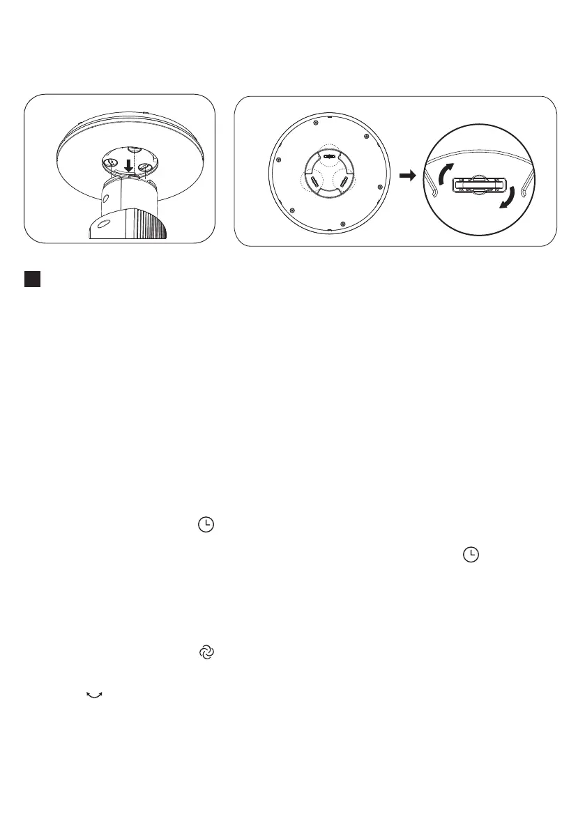 - Drücken Sie, wenn der Ventilator eingeschaltet ist, die Taste „ “, um die