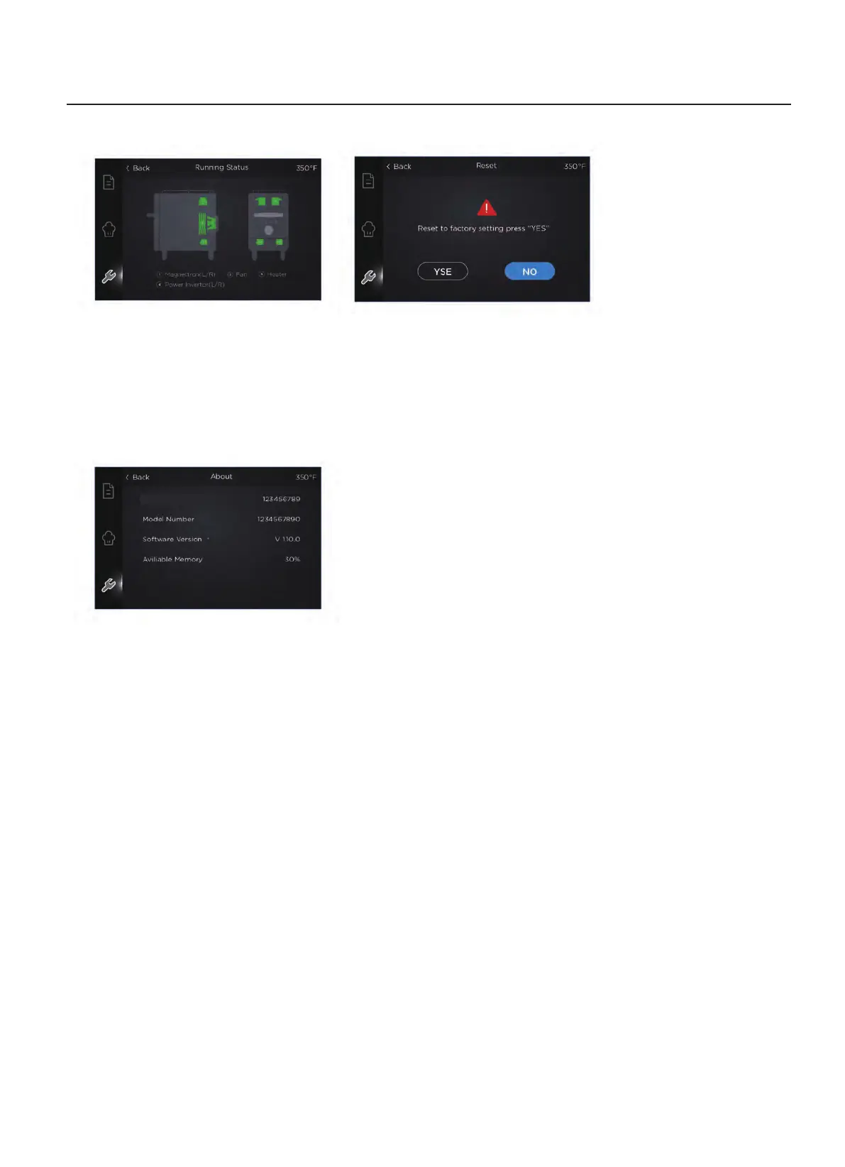 Electronic Controller Version, odule serial Number, Software version and emory
