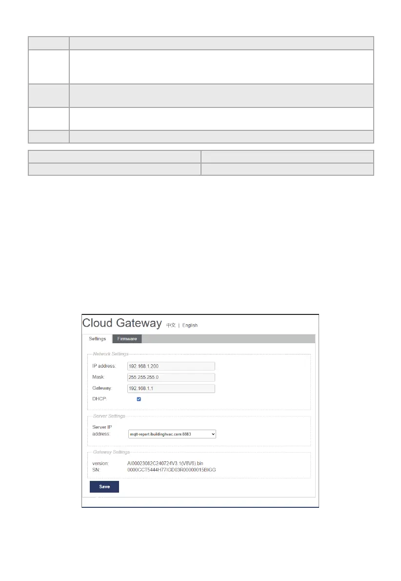 Note: If the gateway fails to obtain an IP address from DHCP, it will become the default static