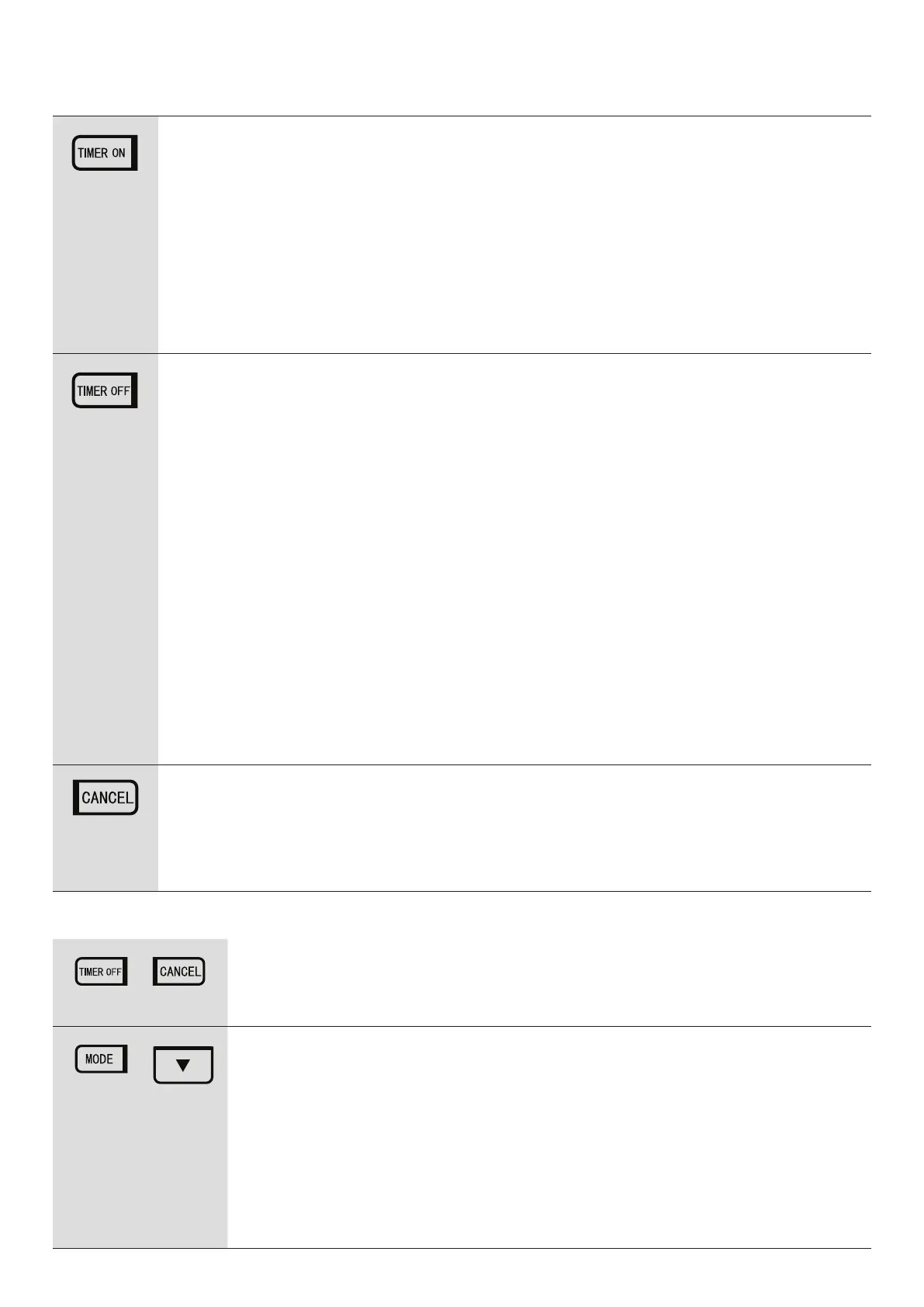 • Enter the Timer Off setting state, then proceed to press the CANCEL button for 3 seconds.