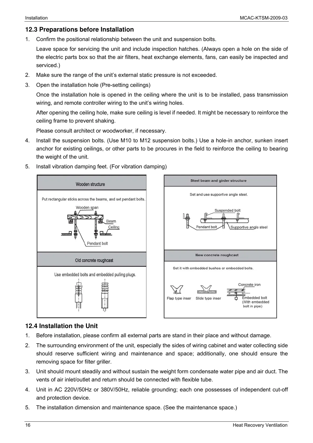 3. Unit should mount steadily and without sustain the weight form condensate water pipe and air duct. The
