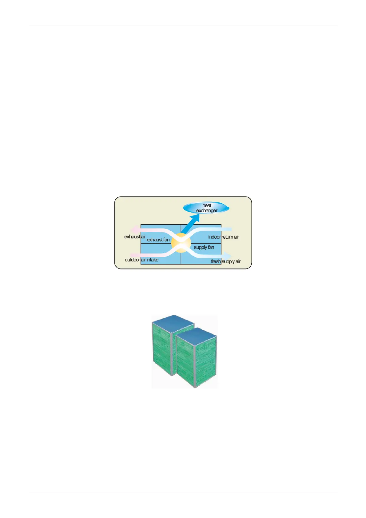 Fresh-air and exhaust air are crossed through the exchanger. Temperature exchange was happened in the