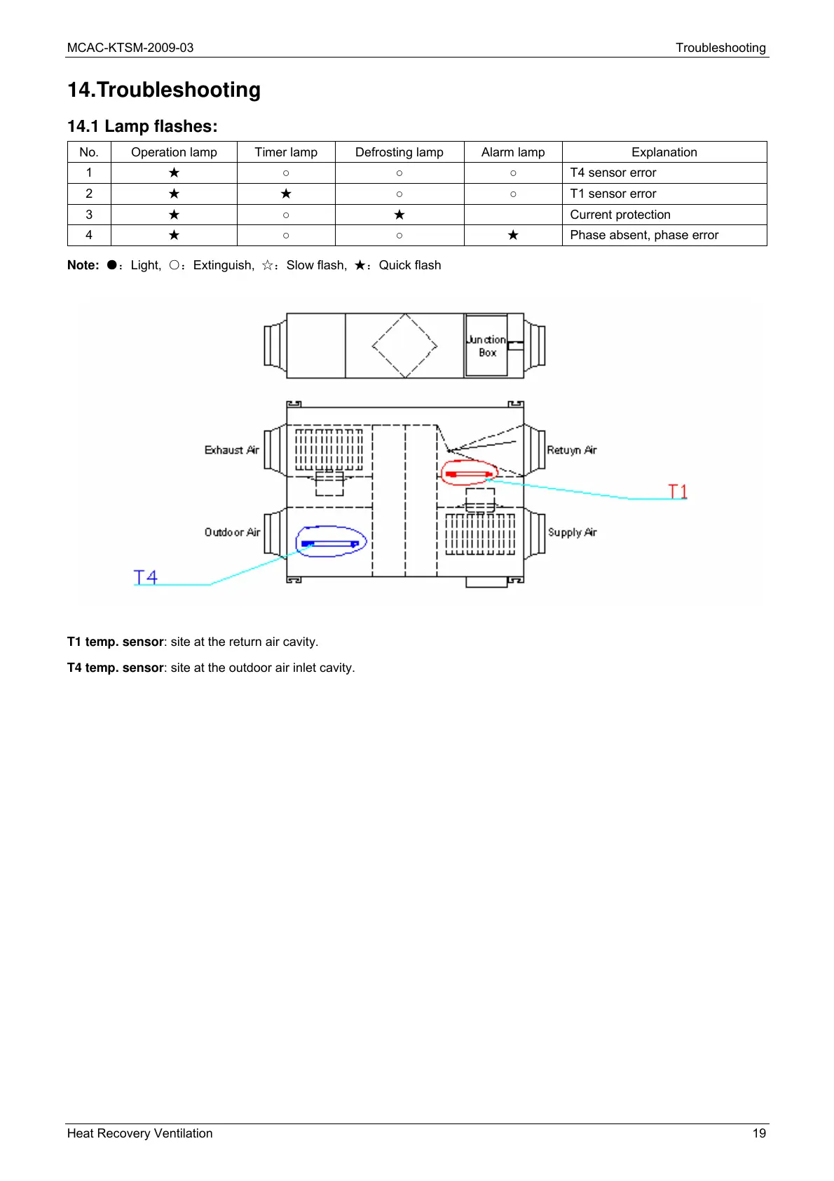 No. Operation lamp Timer lamp Defrosting lamp Alarm lamp Explanation