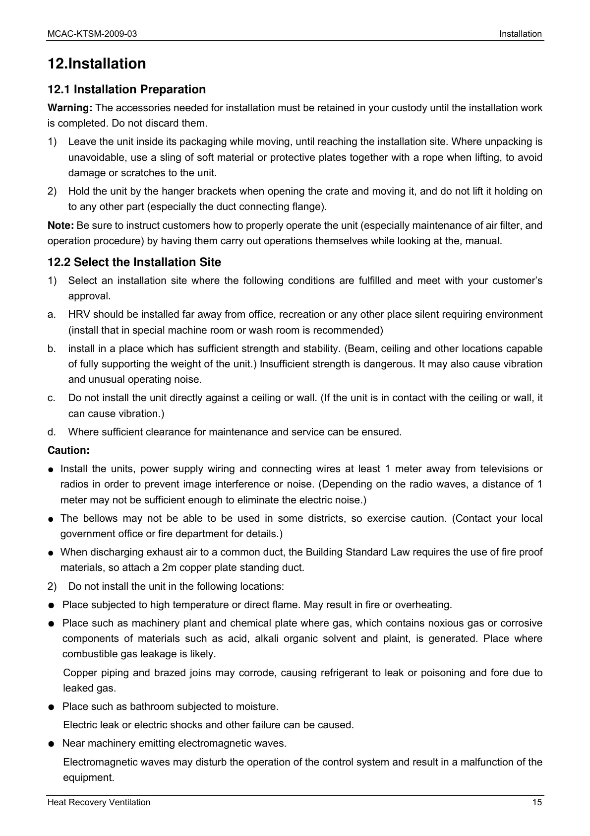 a. HRV should be installed far away from office, recreation or any other place silent requiring environment