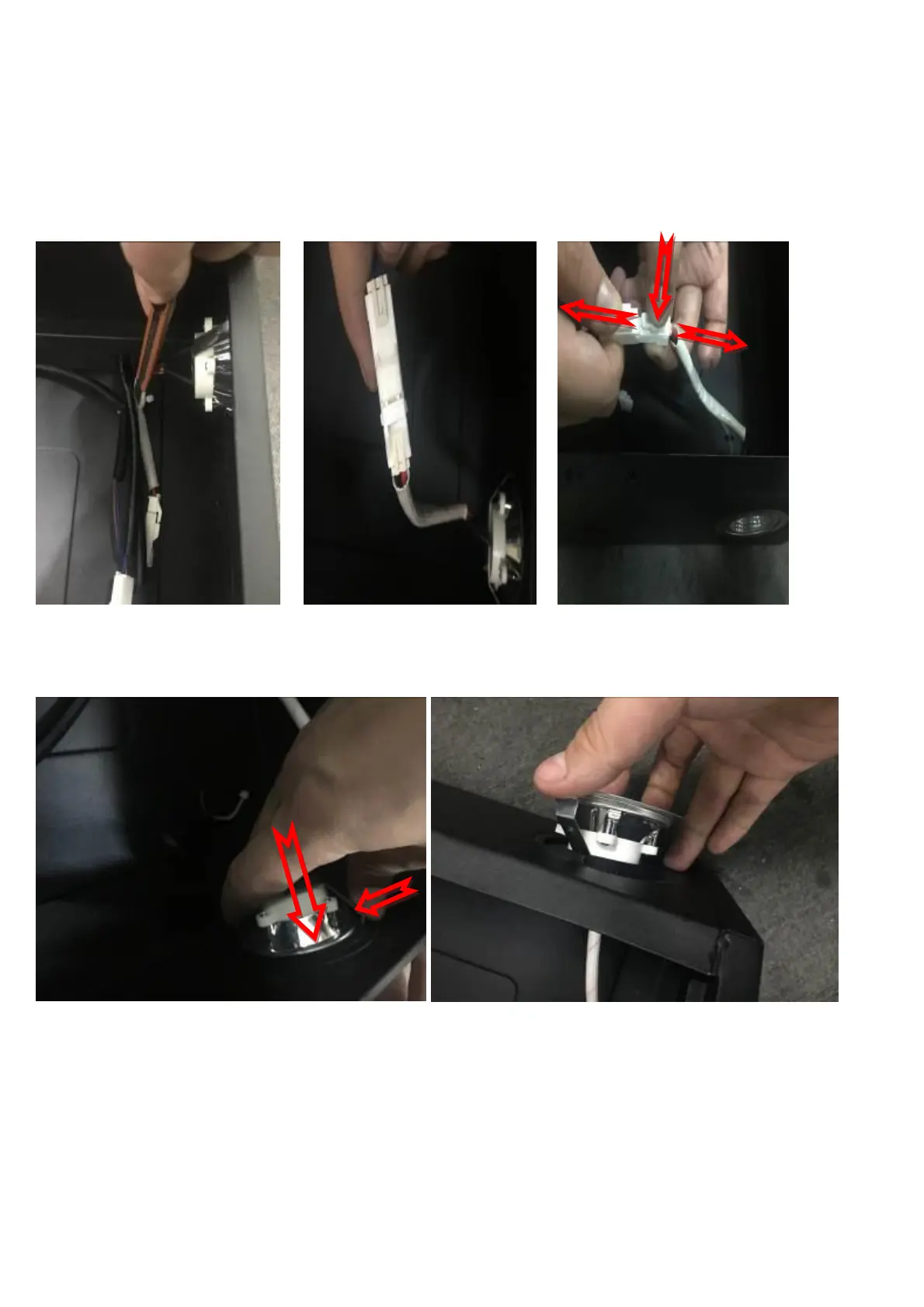 步骤2:如上图中,右所示,将射灯接线端子拔出,用力方向如箭头