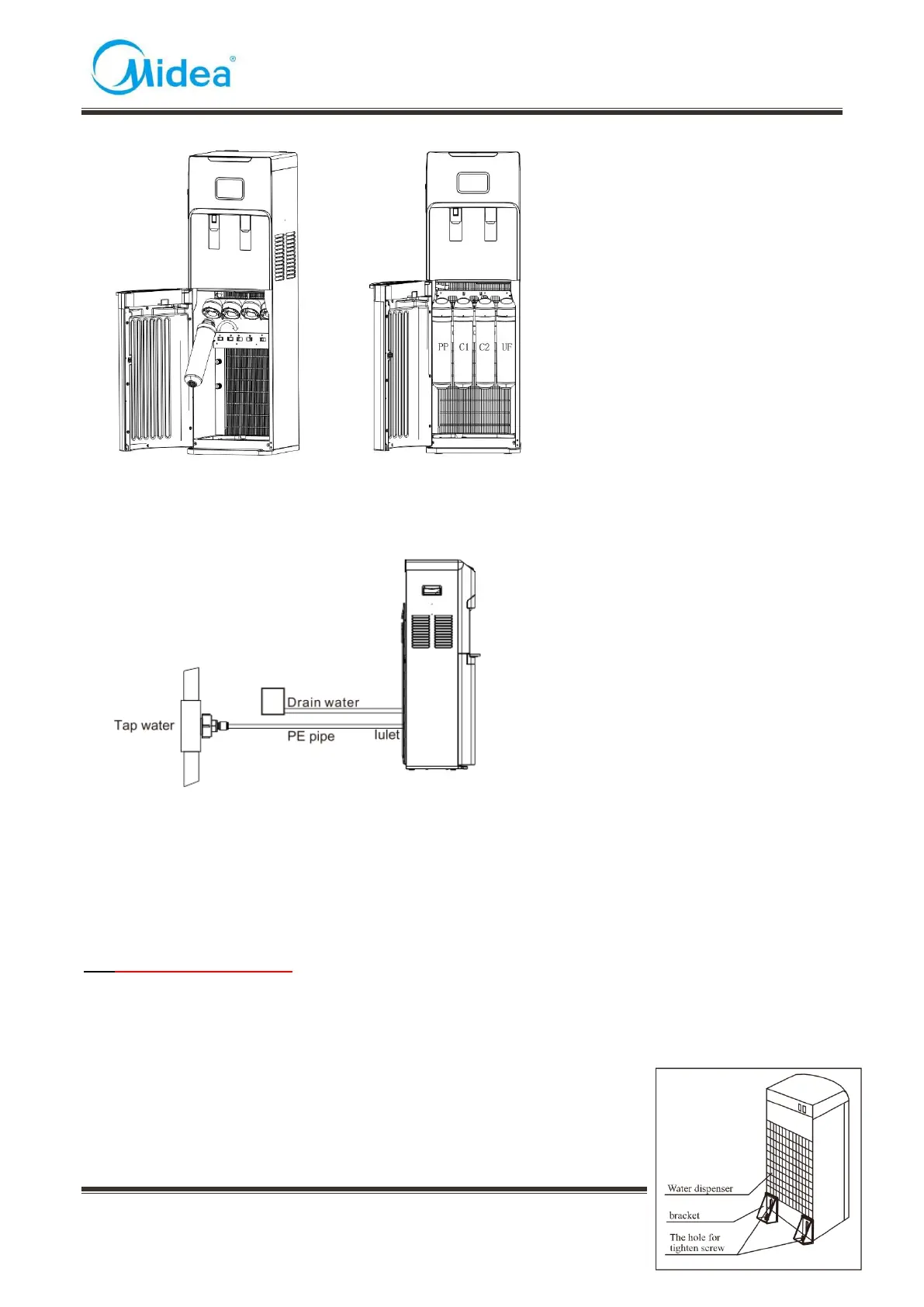 9. Insert the water inlet PE pipe in the quick joint, and tighten the pin.