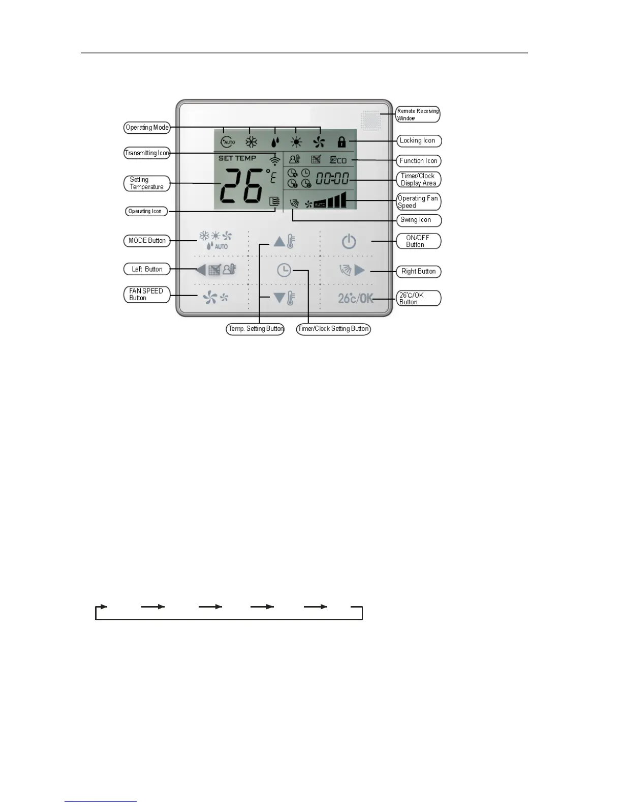 setting. After each fan speed button press will circle as follow: