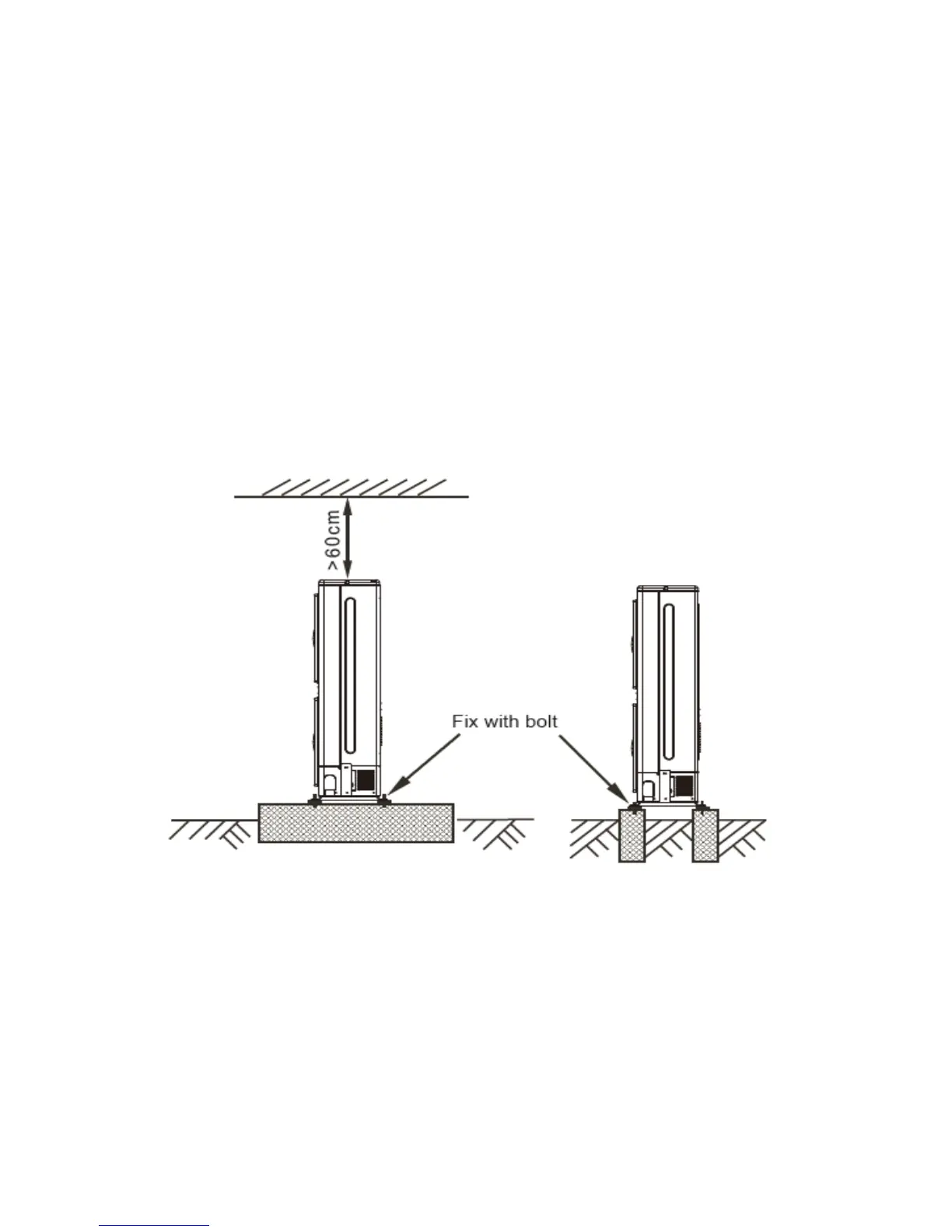5) Make concrete foundation according to the specifications of the outdoor units.