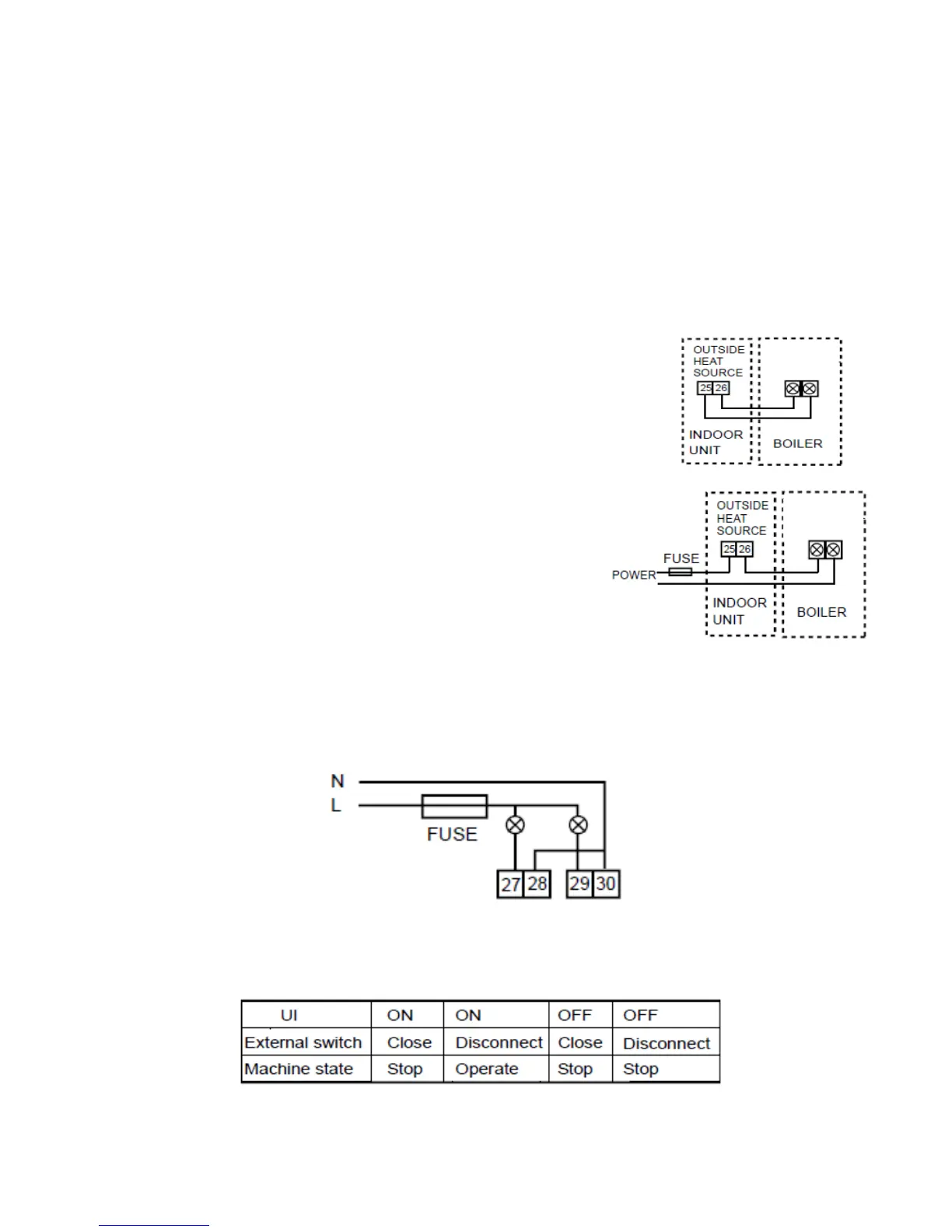 ● The terminal 27 and 28 will be conducted when the unit is running, and will be