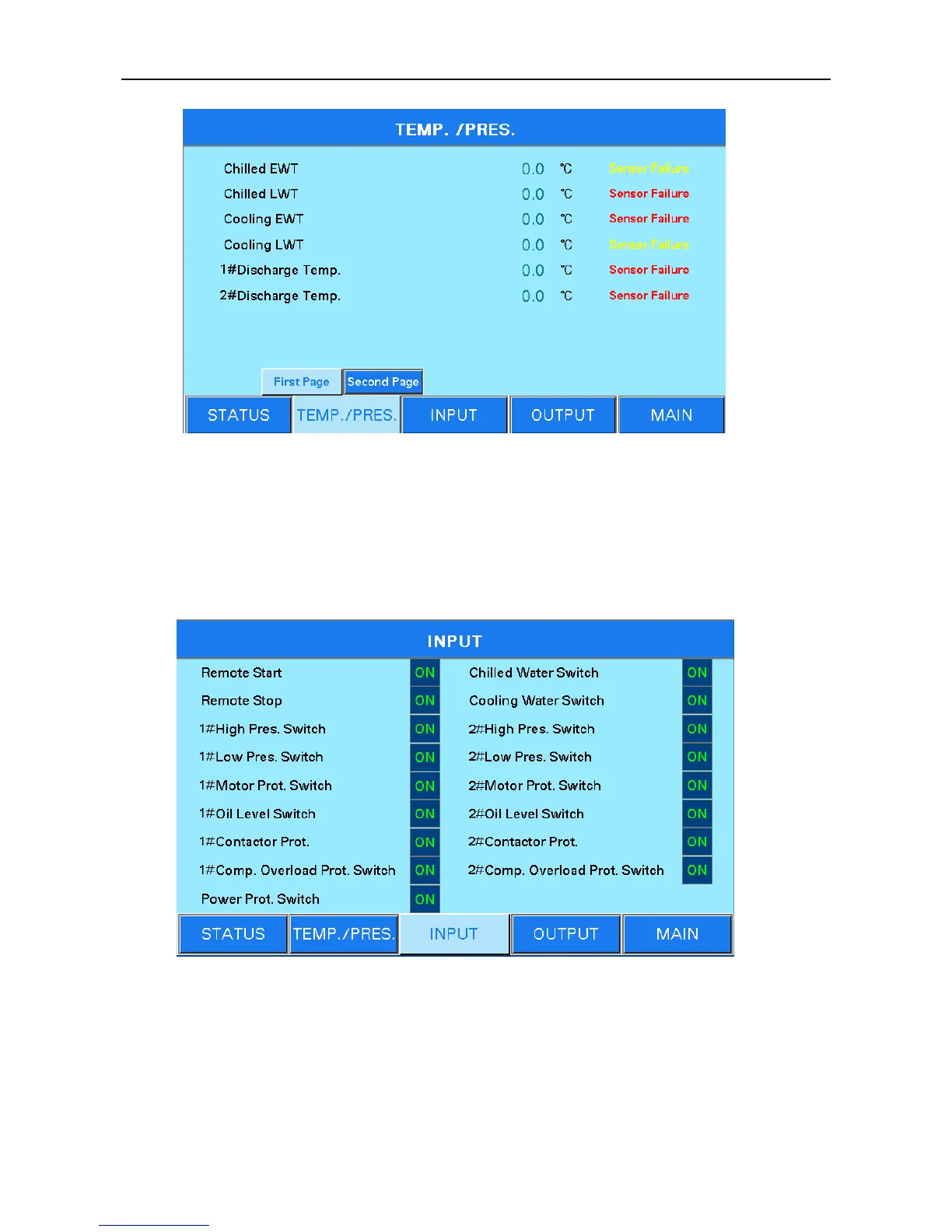 Input status page: “ON” represents the input point is closed, OFF represents the input point break.