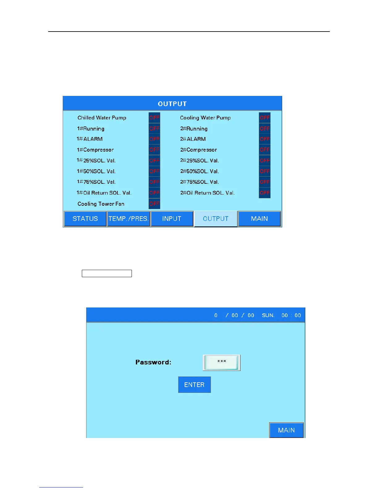 Press Parameter setting in the main page, then password input interface appears. Input the