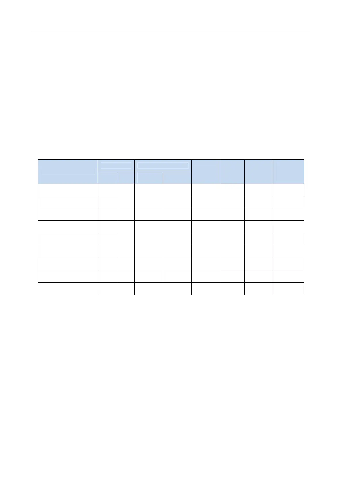 2. Electric parameter table