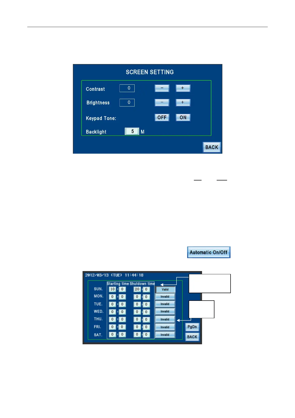 User can modify the time of backlight by clicking on the numeric box following the time of backlight.