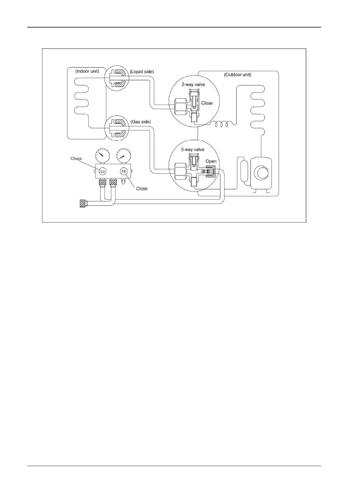 Disconnect the charge set, and tighten the 2-way and 3-way valve’s stem nuts.