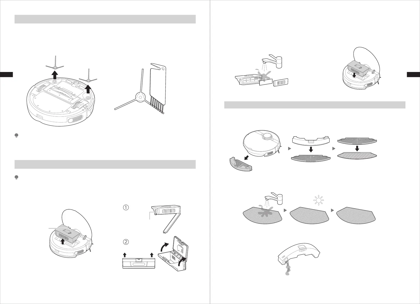 2. Si consiglia di pulire le spazzole laterali ogni settimana e di sostituirle ogni 6-12 mesi.