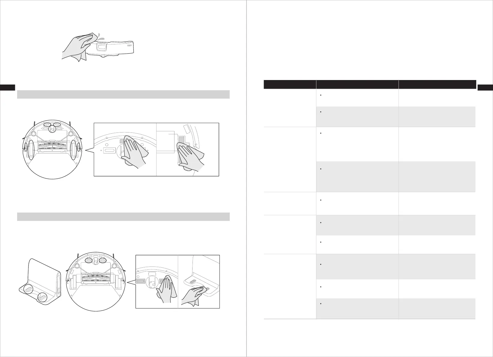 Pulire i contatti di ricarica del robot e della base di ricarica con un panno morbido e