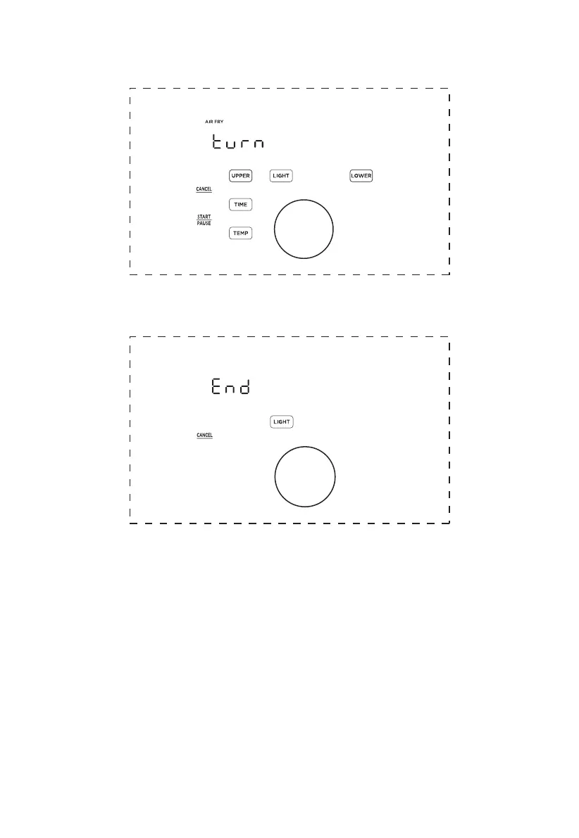Approximately half-way through cooking, the left display will show “Turn Food” If