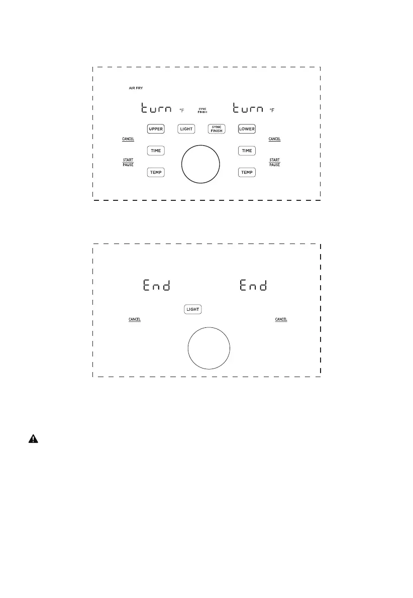 When cooking is complete, the displays will show “End” and there will be 3 beeps. The