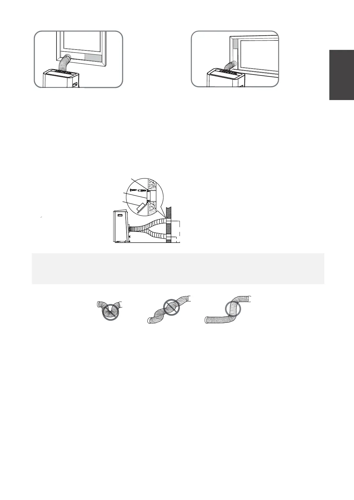 n'y a pas d'obstacle autour de la sortie d'air du tuyau d'évacuation (de l'ordre de 500 mm) afin que le système