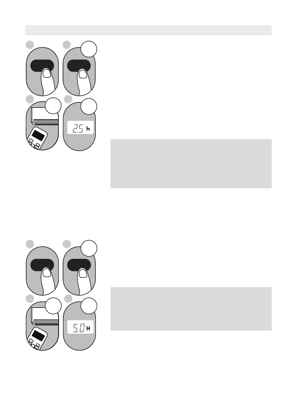 For example, if you set TIMER ON for 2 hours, “2.0h“ will appear on