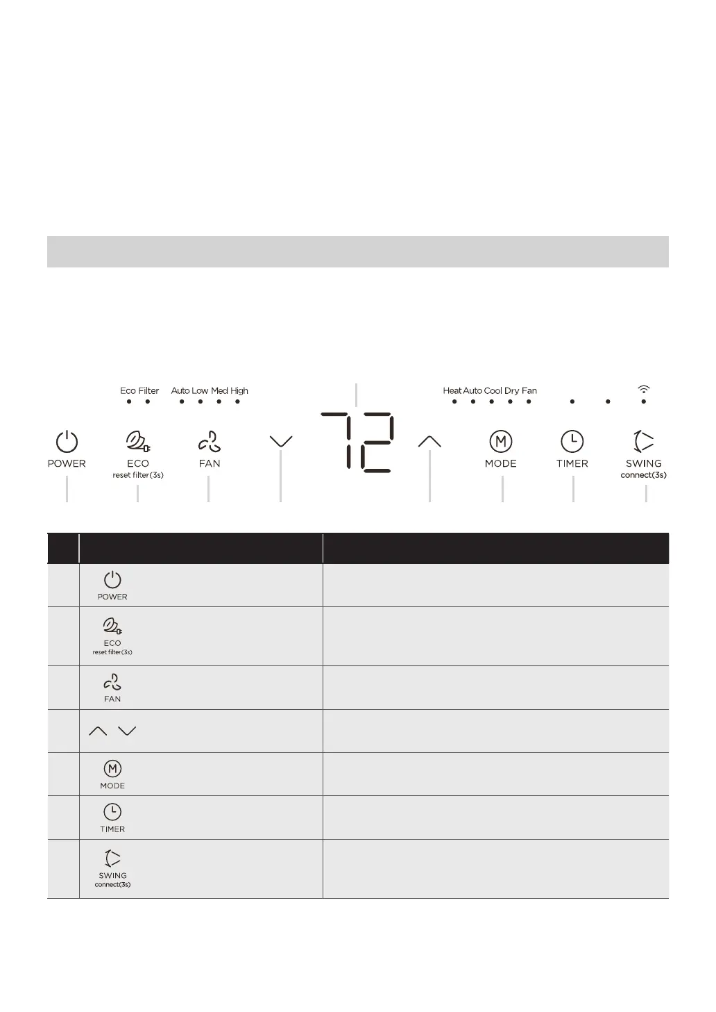 then follow the symbol for the functions you desire. The unit can be controlled by the control panel, remote